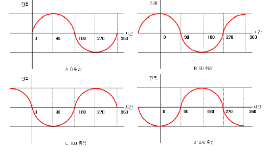 · 위상은 각도나 라디안(360도, 2파이라디안)으로 표현된다.