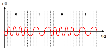 - 디지털 데이터 1과 0을 진폭의 크기만 다르게 하여 전송하는 방식 (300 bps 이하의 저속 모뎀에 사용)