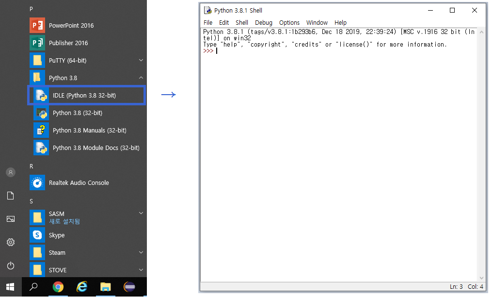 윈도우에서 Python을 찾고 IDEL을 클릭