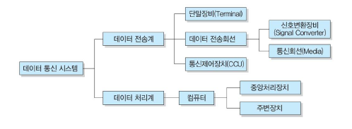 - 전송 설비, 교환 기기, 데이터 단말 장치, 회선 종단 장치 들과 같은 요소 포함