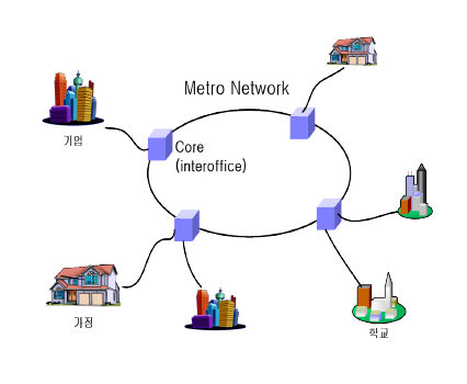 - 기업, 가정, 학교 등을 망라한 1개 도시 정도의 지역을 연결한 정보 통신망
