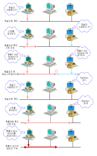 - 물리적인 전송로를 여러 노드가 공유