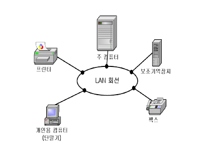 - 좁은 지역(약 50km) 내의 통신회선으로 연결된 PC, 메인프레임, 워크스테이션등의 네트워크 집합