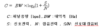 샤논의 정리 공식 (전송 회선의 대역폭과 신호, 잡음을 고려해 통신 용량을 정의)